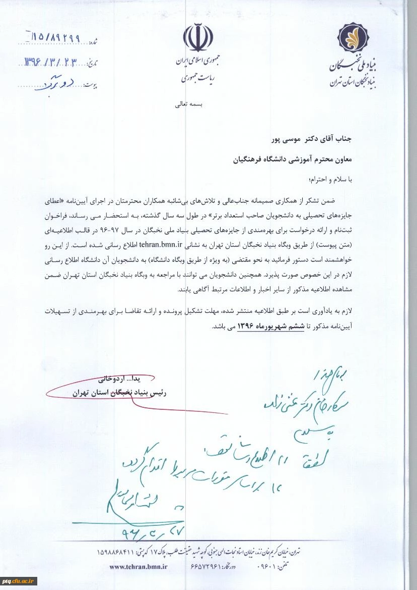 ثبت نام در وبگاه بنیاد نخبگان استان تهران