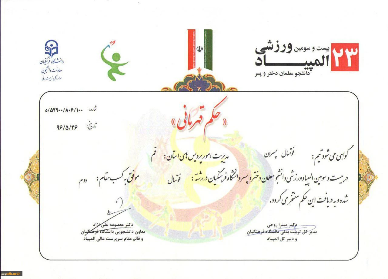 امتیاز دهید : کسب مدال طلا در رشته تکواندو و نایب قهرمانی در رشته فوتسال یکشنبه 5 شهریور 1396 ساعت 14:21
