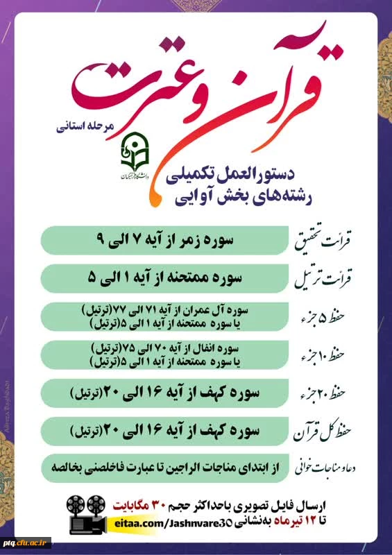 امتیاز دهید : مرحله استانی سی اُمین جشنواره فرهنگی و هنری (قرآن و عترت) 4 سهشنبه 20 خرداد 1399 ساعت 10:24