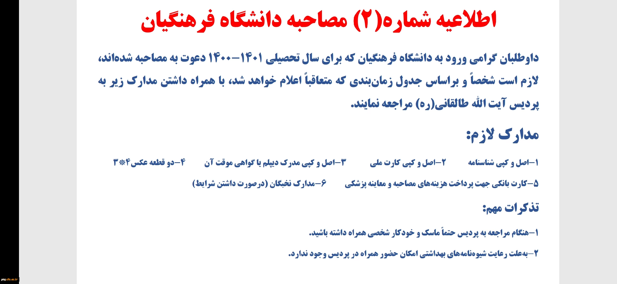 اطلاعیه شماره ۲ مصاحبه دانشگاه فرهنگیان 2