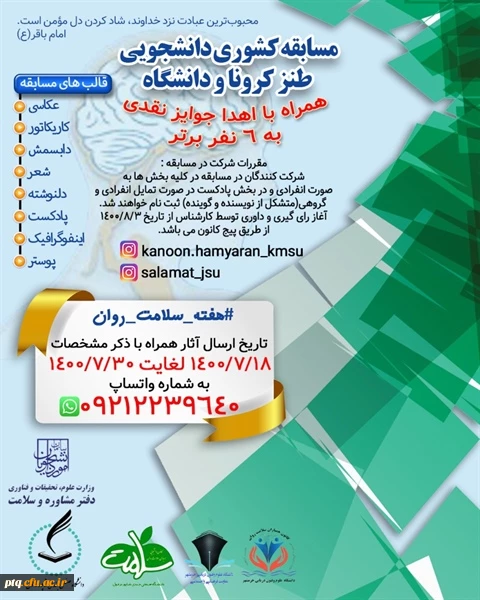 برگزاری مسابقات دانشجویی با عنوان پویش تولید محتوی دیداری و شنیداری - طنز کرونا و دانشگاه 2