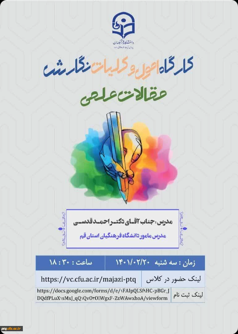 امتیاز دهید : برگزاری کارگاه اصول و کلیات نگارش مقالات علمی در علوم تربیتی 2 یکشنبه 8 خرداد 1401 ساعت 10:56