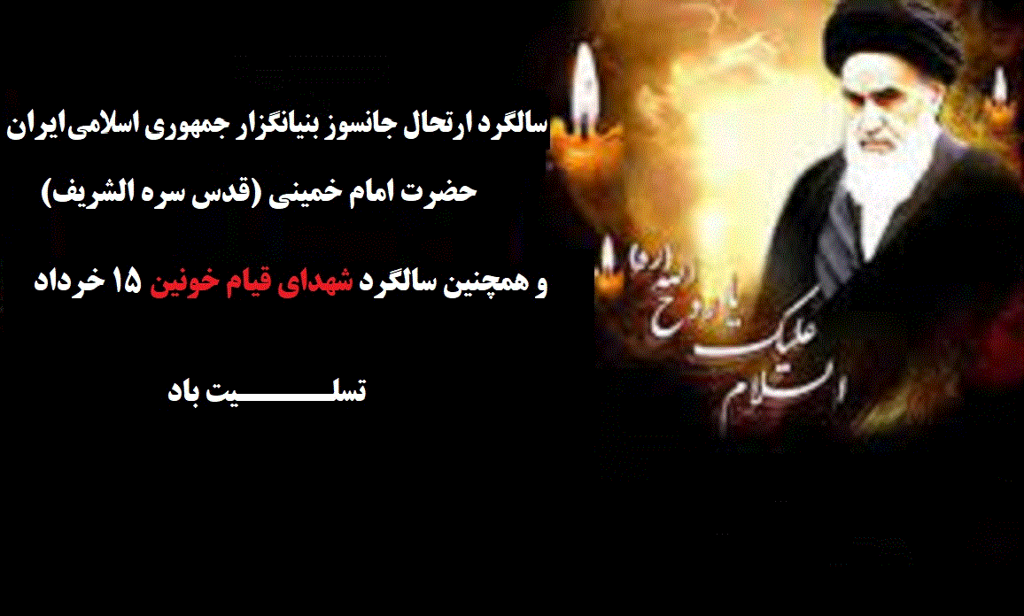سالگرد ارتحال جانسوز بنیانگزار جمهوری اسلامی ایران حضرت امام خمینی (قدس سره الشریف) و همچنین سالگرد شهدای قیام خونین 15 خرداد تسلیت باد 2