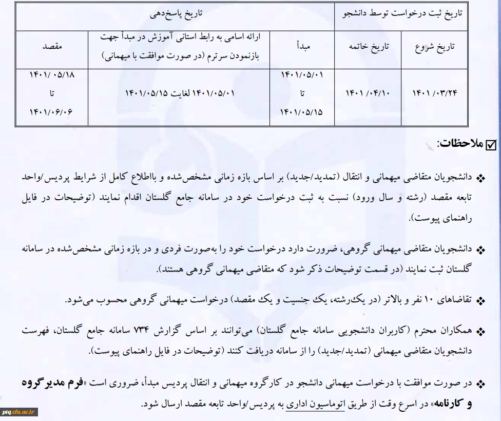شیوه نامه میهمانی و انتقال دانشجویان 2