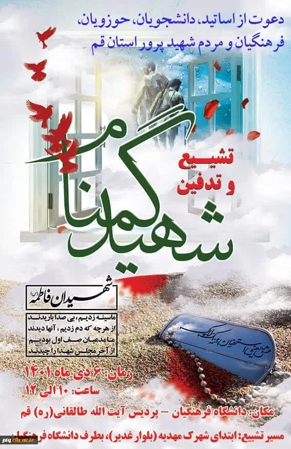 اطلاعیه تشییع شهید گمنام در پردیس آیت الله طالقانی(ره) 2