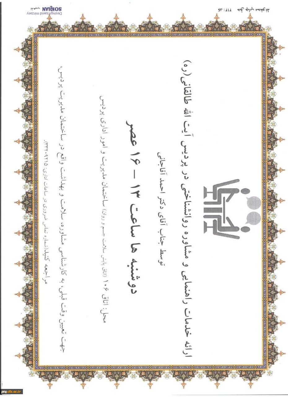 امتیاز دهید : اعلام ساعات و مکان های ارائه خدمات پزشکی و خدمات راهنمایی و مشاوره پردیس 2 دوشنبه 29 آبان 1402 ساعت 8:34