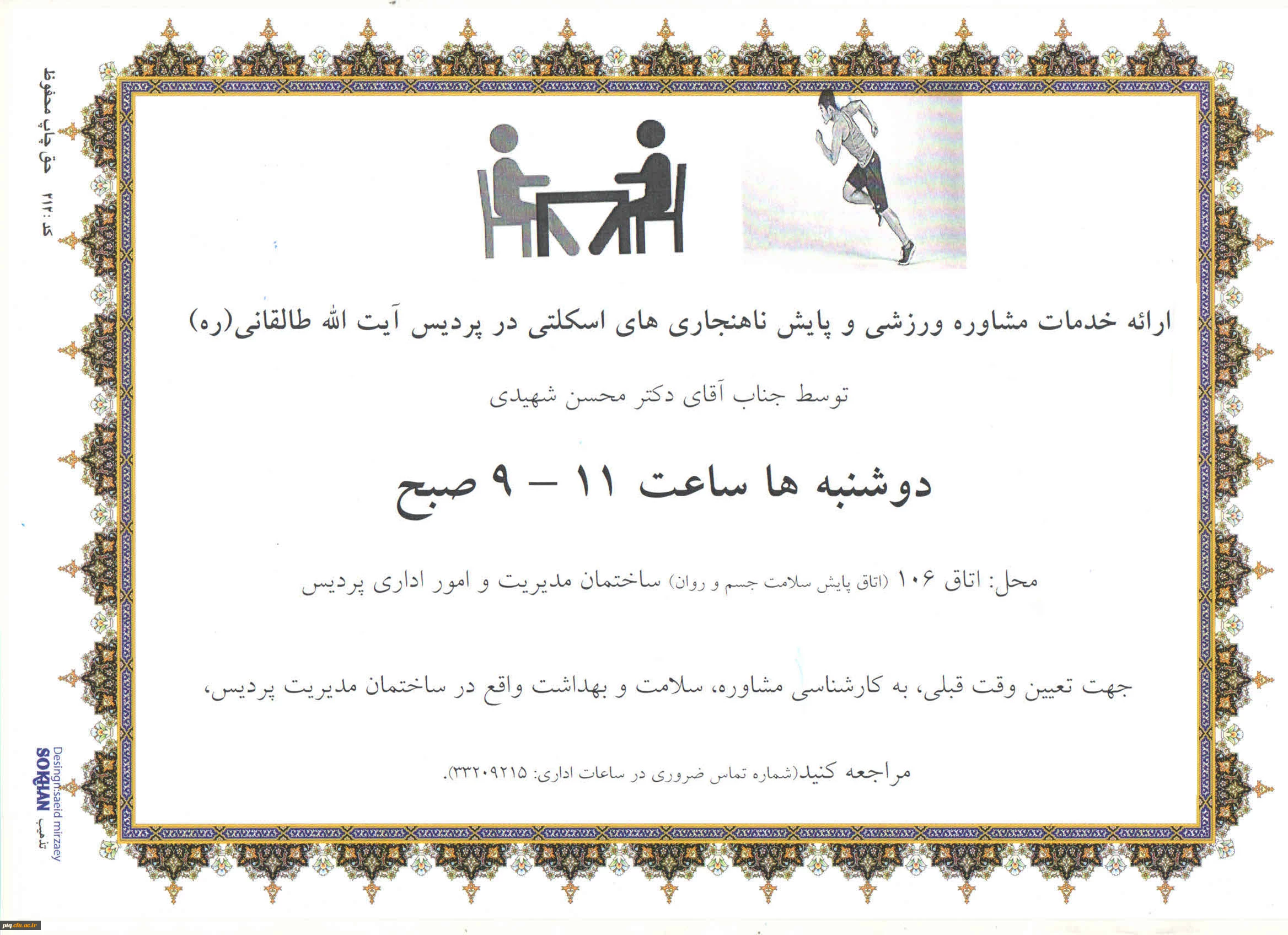زمان و مکان ارائه خدمات راهنمایی و مشاوره ورزشی و پایش ناهنجاری های اسکلتی دانشجویان 2