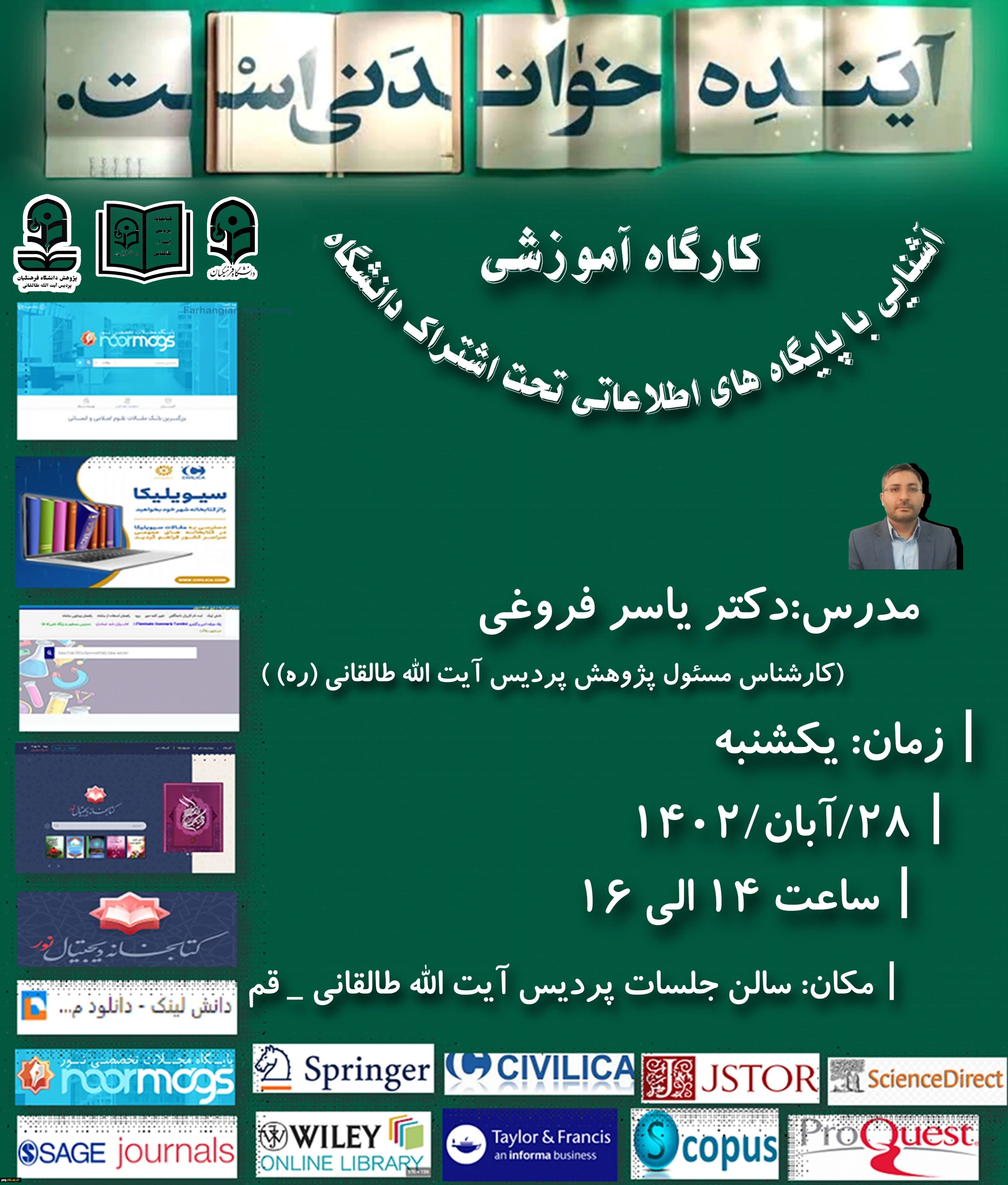 امتیاز دهید : برگزاری کارگاه «آشنایی با منابع اطلاعاتی تحت اشتراک دانشگاه» 2 شنبه 4 آذر 1402 ساعت 14:40