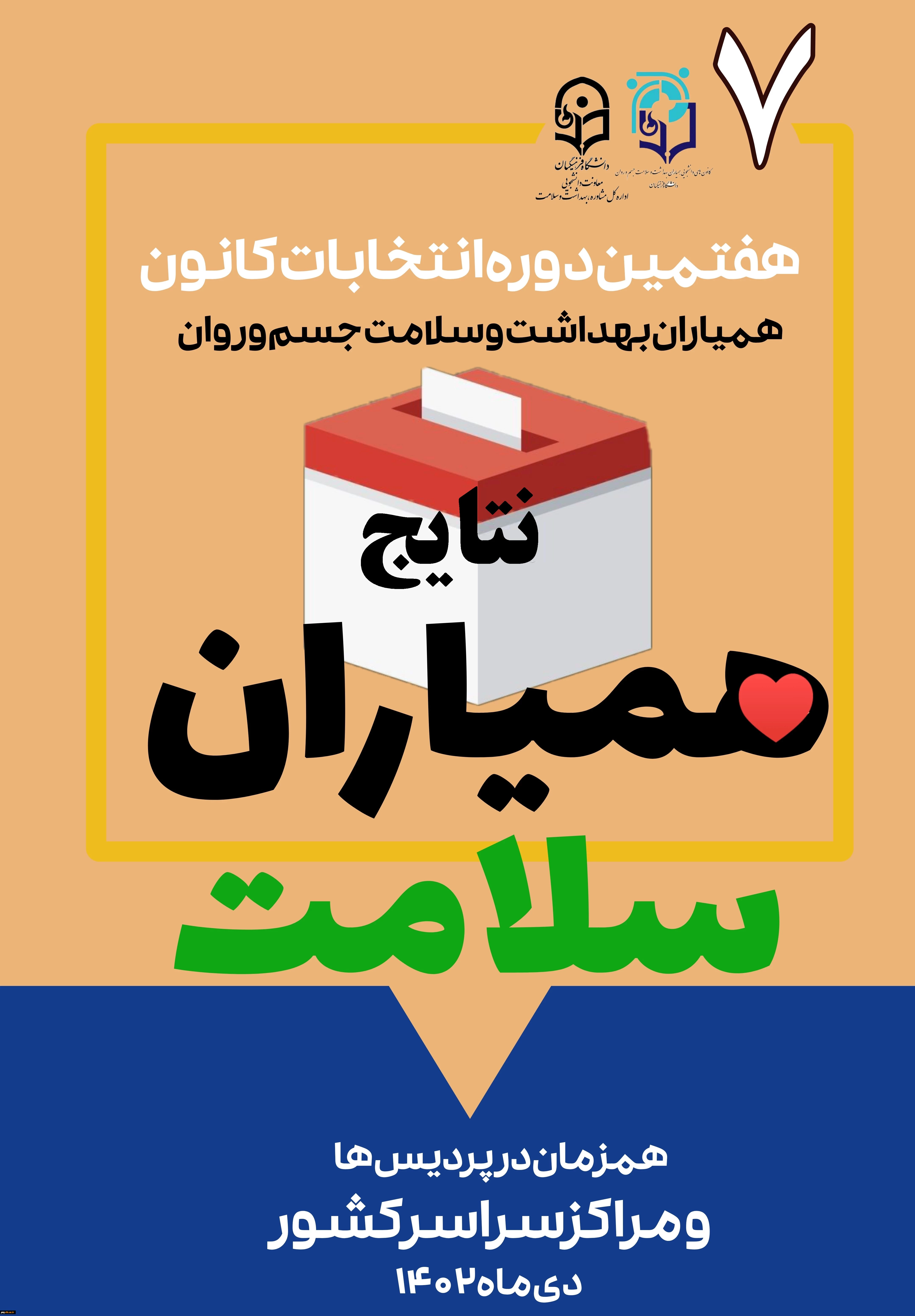 اعلام نتایج برگزاری هفتمین دوره انتخابات شورای مرکزی کانون دانشجویی همیاران بهداشت و سلامت جسم و روان پردیس آیت الله طالقانی(ره) 2