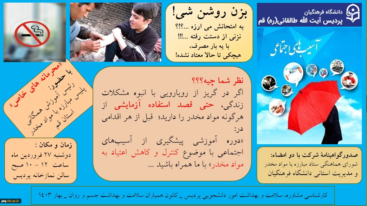 برگزاری دوره آموزشی پیشگیری از آسیب های اجتماعی با موضوع کنترل و کاهش اعتیاد به مواد مخدر در پردیس آیت الله طالقانی(ره) 2